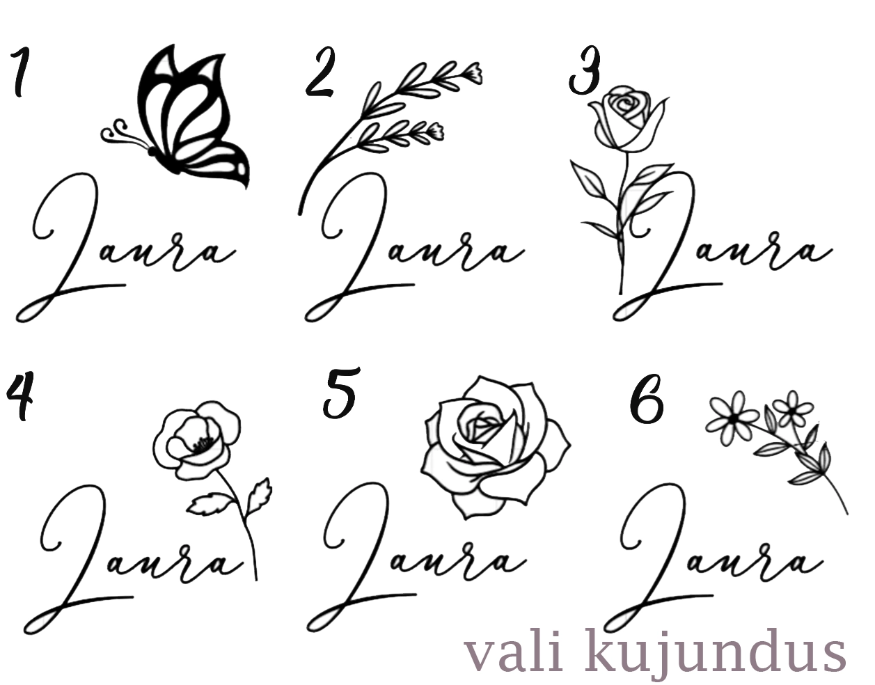 Lisa sinna nimi ja vali juba tehtud kujunduse seast oma lemmik – nii muutub ehtelaegas tõeliselt isiklikuks. Kingitus, mis räägib südamest ja jääb kauaks meelde.